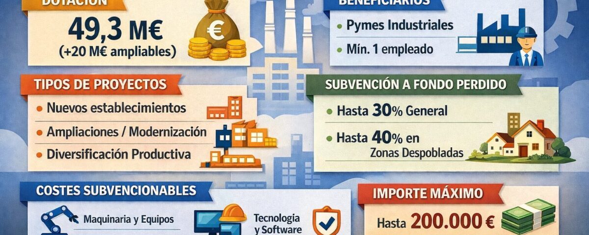 3. PRESUPUESTO MÍNIMO SUBVENCIONABLE en 2026: El presupuesto mínimo subvencionable del proyecto de inversión industrial será de 20.000 euros, IVA excluido, salvo para los sectores de la biotecnología, la producción audiovisual y la producción de videojuegos, animación, realidad aumentada y virtual que será de 10.000 euros, IVA excluido.